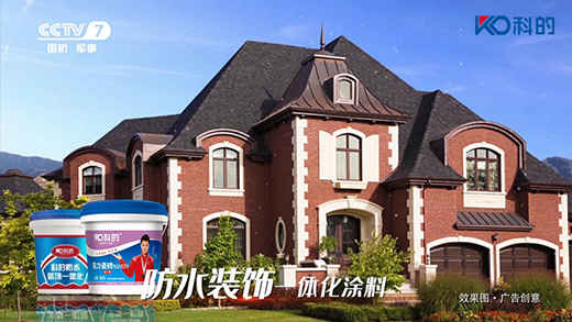 以“防水裝飾一體化涂料”為央視廣告片宣傳主題的科的涂料,在未來將繼續致力于提升產品和服務質量,滿足人們對高品質生活的額追求,用“核心技術·精湛工藝”為消費者提供全面的建筑涂料解決方案。