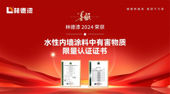 - 林德漆榮獲全國首批《水性內墻涂料中有害物質限量認證證書》 - 2024/04/18