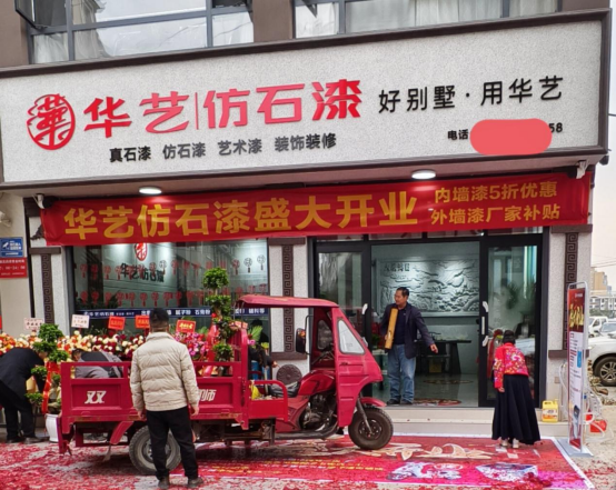 華藝仿石漆大理祥云縣店的開業(yè),是華藝涂料深耕西南市場的重要一步。從店面選址、裝修設(shè)計到開業(yè)籌備,華藝總部全程提供專業(yè)幫扶,確保店面以最佳狀態(tài)呈現(xiàn)給消費(fèi)者。