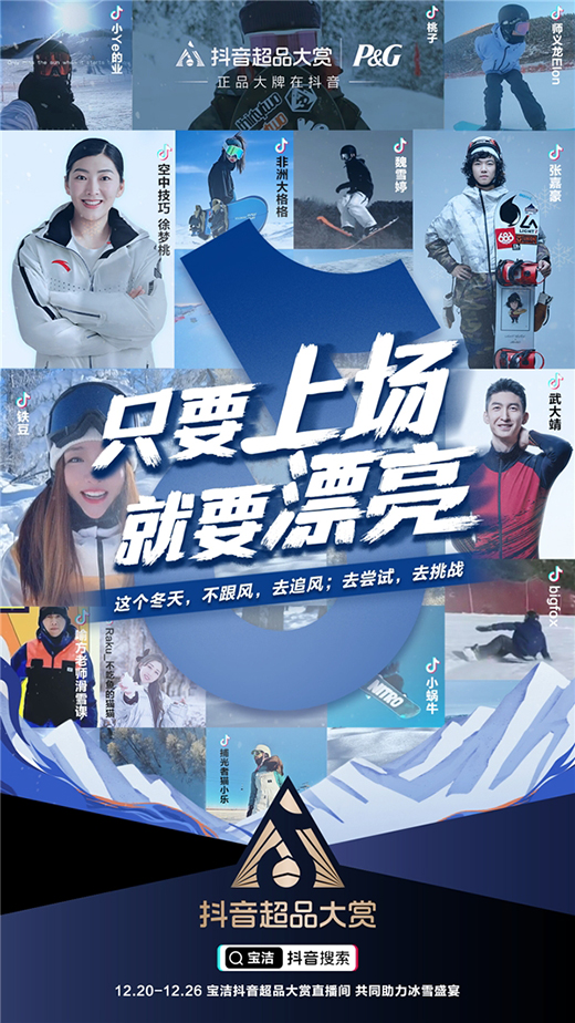 抖音超品大賞與寶潔攜手,將人們因冬奧將至而不斷升溫的冰雪運動熱情與寶潔產品利益點相結合,打造“漂亮冰雪短片”,發起抖音站內趣味玩法,為的是鼓勵普通人不畏困難,全身心享受冰雪運動。項目延續品牌“只要上場,就要漂亮”營銷主題,邀請8位奧運健兒及明星共同發聲,助力每個漂亮瞬間。更重要的是,此次合作打破了奧運營銷的常規視角,利用抖音站內豐富的達人資源,將抖音滑雪愛好者純粹的快樂,傳播至全網。