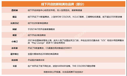 僅在2021年下半年,就有觀夏、聞獻、薇諾娜、小奧汀、橘朵等品牌,在線下開設直營店,而選擇入駐美妝集合店的新銳品牌則多不勝數。