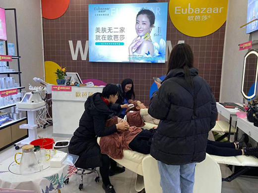 銷售層面上。歐芭莎一手抓服務,一手抓渠道。首先,歐芭莎建立了行業(yè)第—個美妝生活館,提供“一人一方,量膚定制”服務,每位到店的消費者,購買產(chǎn)品前都要經(jīng)過高端儀器檢測,然后導購根據(jù)各項指標數(shù)據(jù)進行產(chǎn)品推薦,確保消費者買到適合自己膚質(zhì)且能針對性解決肌膚問題的產(chǎn)品。