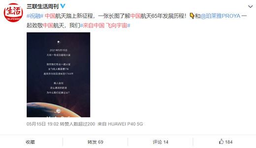 此外,包括柴知道、三聯生活周刊、微博航天、一個好設計、真香科普君、China航天等在內的KOL也在#來自中國飛向宇宙#話題下互動,并進行聯名產品的種草,顯著提高了此次活動的互動性以及傳播度。