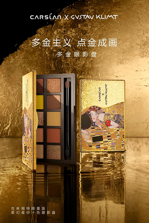2020年,卡姿蘭大膽玩妝,跨界奧地利“黃金畫家”克林姆特,以其經典畫作《The Kiss》為靈感,推出克林姆特限量版多金眼影盤,為消費者打造獨一無二的眼妝黃金時代。