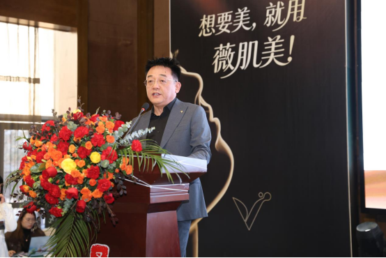 12月16日下午,發(fā)布會在董事長李澤峰的歡迎詞中拉開帷幕。他以沉穩(wěn)的視角回望品牌成長之路,強調(diào)薇肌美始終堅守讓每個人活出綻放的自己的使命,以科學與創(chuàng)新為翼,深耕高端抗衰賽道。