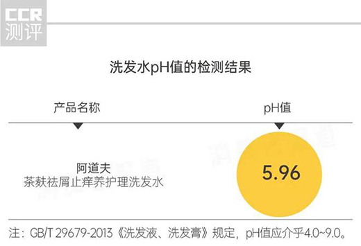 檢測結果顯示,阿道夫茶麩祛屑止癢養護理洗發水pH值為5.96,呈弱酸性,這個數值基本上與人體皮膚相接近,所以更安全、更溫和。