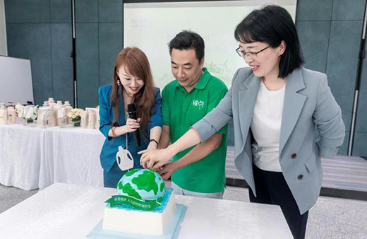 阿道夫企業代表、環保志愿者們一起點亮“地球蛋糕”,共同為地球“慶生”。