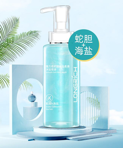同時,隆力奇蛇膽海鹽沐浴皂液和上海藥皂海鹽凈膚液體香皂雖然都是主打“海鹽凈膚”的理念,配方設計與功能體現還是有所不同。隆力奇蛇膽海鹽沐浴皂液主要采用了天然海鹽與經典蛇膽原汁的搭配,主要功能則體現在舒緩肌膚與緩解粗糙層面。