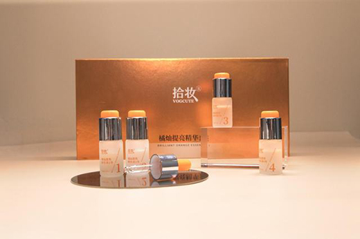 其中最重要的就是人體真皮干細胞研究、細胞膜分子傳輸技術、雙核心包裹技術,再經過全球權威供應商原料,獨立的研發團隊打造頂尖科研技術配方,讓拾妝vogcute產品效果更加顯著。比如拾妝vogcute主推的橘燦提亮精華套裝就采用2種抗氧成分和3大特色生物系統。