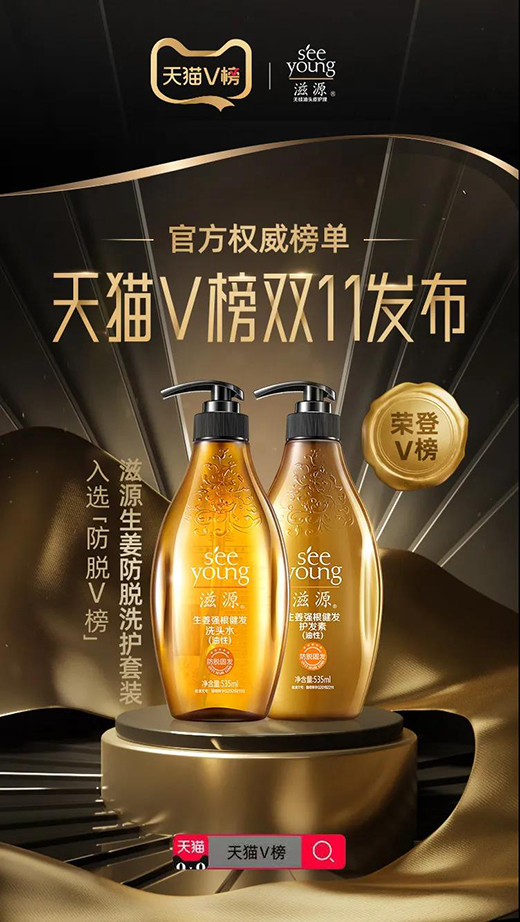 線上,滋源深度合作天貓、京東、唯品會等傳統電商平臺,以及抖音、快手等興趣電商,且成績突出,其生姜強根健發洗頭水17-19年連續3年榮獲天貓金妝獎,2021更是榮登天貓V榜;無患子清爽控油洗頭水,也斬獲天貓控油洗發水銷量桂冠!