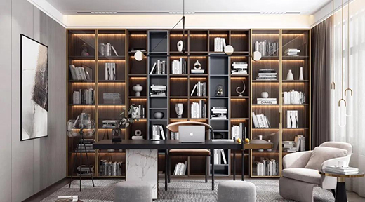 2.利用射燈照射書柜,使光線直射到書柜上的藏書或物品,營造出視覺焦點變化的效果。