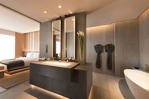 傳統照明形式,主要是一盞燈起到全局照明的作用。而無主等的設計摒棄了單一的大吊燈形式,用燈帶、筒燈、射燈、落地燈等燈具替代。多種光源的組合搭配,可以達到視覺上的延伸,豐富空間的層次感。