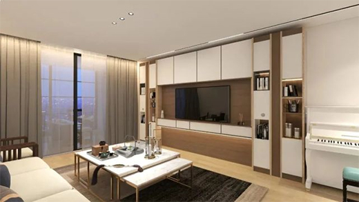 在客廳中,通過線性射燈來對藝術裝飾做重點照明,同時用筒燈和燈帶做基礎照明。在吊頂、墻壁中裝置隱藏式的燈帶,能夠保證必要的空間亮度需求,與此同時,使空間整體氛圍更加具有層次感。