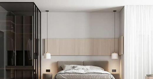 另外,床頭柜一般會放置手機、遙控器、鬧鐘、水杯等重要的物件,所以床頭柜部分的照明也是必不可少的,一般我們都會建議在床頭柜的上方安裝一盞燈,可以是臺燈、壁燈、射燈或者是吊燈。