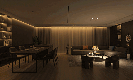 隨著社會的進步,使得人們對燈光的需求不再停留于“照明”這個基本功能,更多的是追求燈光的健康舒適度、空間藝術感和層次感,不同的場景下,燈光起著至關重要的作用。在燈光設計中,應秉承“智能”“個性”“舒適”的照明設計理念,考慮到用戶的場景體驗和燈光的功能性,做到燈光清晰無藍光、防眩不刺眼,結合智能照明的應用,深度滿足用戶的個性化需求。