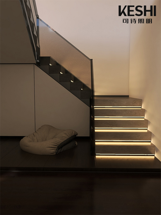 像KESHI可詩照明在售的樓梯燈便有三種款式,包括標準款(人體感應,踏步時,樓梯逐步亮)、全亮款(踏步時,樓梯全亮)及智能款(踏步感應或流水燈模式隨意切換),消費者可以根據自己的需求選擇合適的樓梯燈,步步生光這個想象簡簡單單便能實現了!