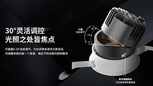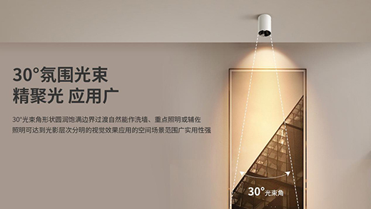 30°光束角可作洗墻、重點照明和補充照明,光感立體光斑純凈無重影,應用的空間場景范圍廣實用性強。