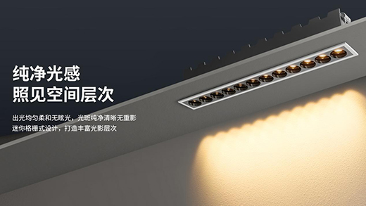 EGS32迷你格柵燈具有超強的層次光影表現能力,多個立體光效相互交織,勾勒出空間的輪廓與溫柔。采用了三重光學級防眩技術,層層加碼造就舒適好光感,且出光均勻控光精準,創照別具一格的氛圍感。