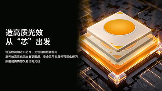 內置德國歐司朗OSRAM芯片,高光效高顯色性能穩定無可視頻閃,讓光感明凈細膩清晰。