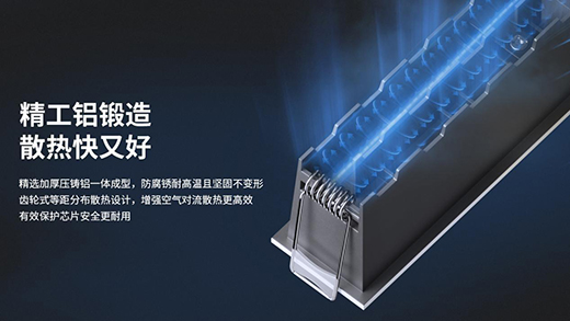 齒輪式等距分布散熱造型設計,增強空氣對流散熱更高效。并提供兩款規格搭配使用,讓簡約的空間充滿著豐富的視覺效果,凸顯出住宅的精致之美。