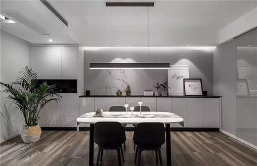 餐廳的燈光需要明亮能夠讓食物看起來充滿食欲,又不能太刺眼,破壞氛圍,無主燈不僅能夠做到無死角照明,還能局部打光。