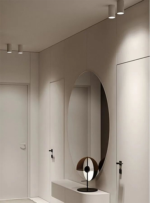 而過道的燈光除了增加亮度之外,也方便日后在過道放置一些油畫或者其他藝術品,增強屋內(nèi)裝飾而不顯突兀。