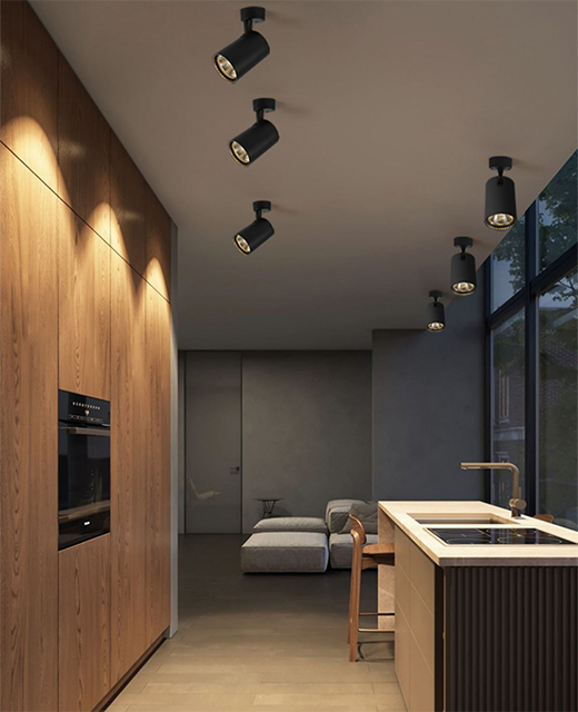 ? 廚房布燈避免被遮擋。為避免油煙,廚房應可選簡單且易清潔的燈具,為避免光源被遮擋,選40-60°光束角燈飾,將其安裝在所需區(qū)域正上方。