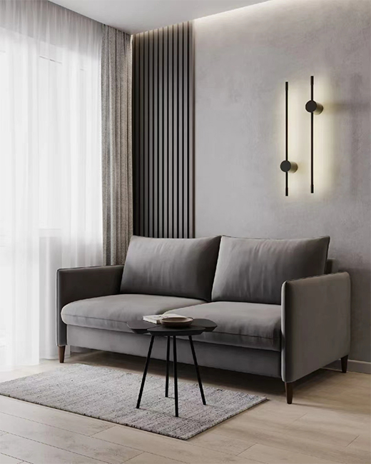 ? 沙發(fā)背景墻燈飾推薦使用射燈。線性射燈安裝在距墻50-60cm處;軌道射燈安裝在距墻45cm處重點打燈光在墻面裝飾上,暗裝射燈或筒燈安裝在距墻25-35cm處;