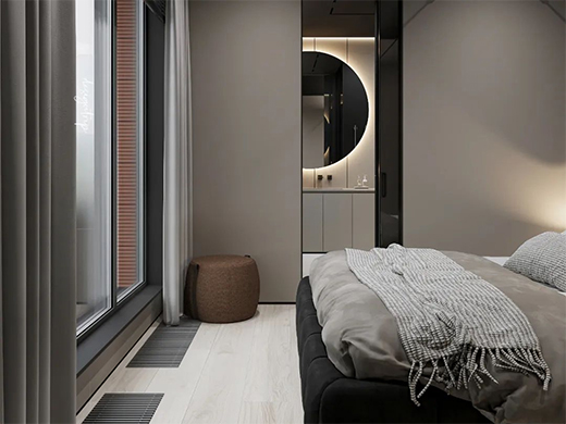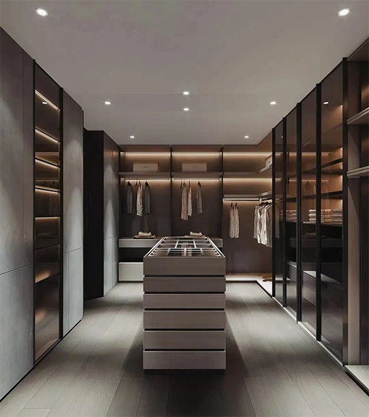 ? 臥室衣帽間裝燈帶。若臥室有衣帽間,可在衣柜前方25~35cm處可布置盞安裝射燈,柜體內(nèi)嵌燈帶,這樣不論是平開門還是推拉門都不會受影響。
