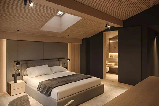 下面這個由DE&DE Studio事務所設計臥室,便通過極具藝術感的方式隱藏了光源,降低亮度,從而打造出一個極具藝術感與愜意的臥室。