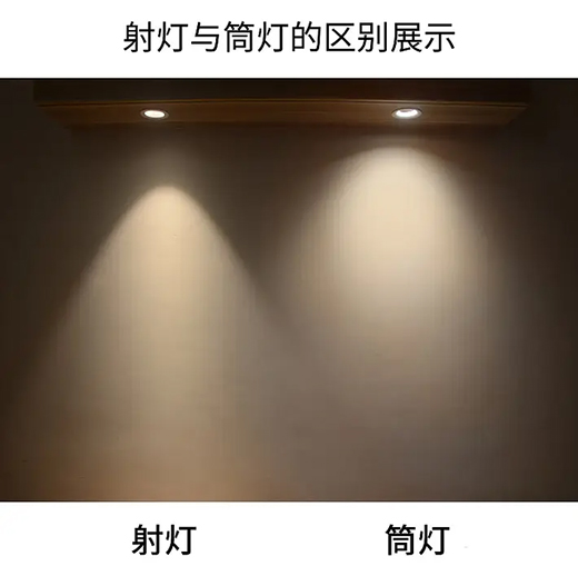 先說筒燈和射燈怎么選:洗墻聚光用射燈,廚衛(wèi)過道用筒燈。