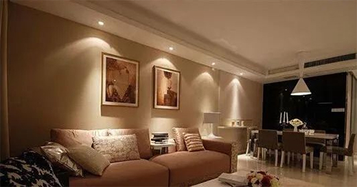 層高3.5m以內(nèi),家用嵌入式射燈功率5~8W、明裝射燈、軌道燈8~10W。