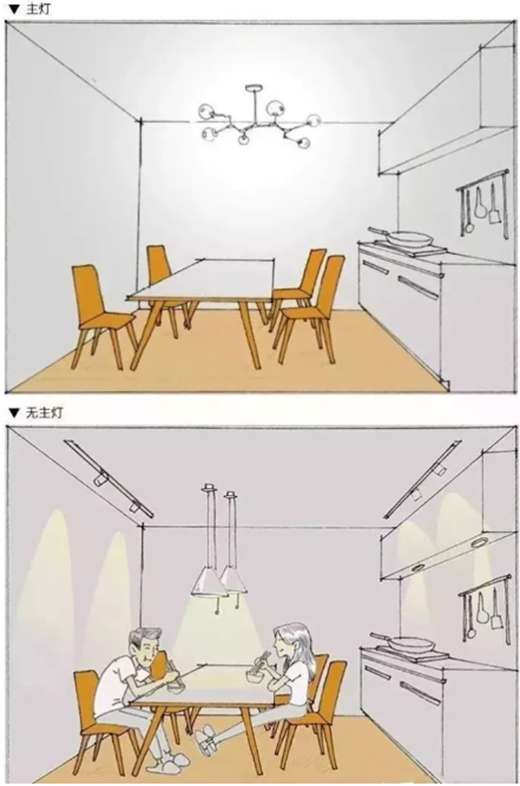 無(wú)主燈照明就是拋棄了又大又亮、天天罩在頭頂?shù)闹鳠?,用更多更具體的光源照亮我們希望照亮的空間,照明方式更加精準(zhǔn)、具體,更加貼合實(shí)際使用需求。