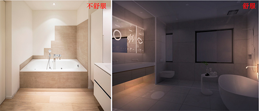 對(duì)于衛(wèi)生間照明,很多家庭就在頂部安裝了一個(gè)主燈,由于投光原理,很多邊角位置有陰影,比如洗漱臺(tái)的化妝鏡最好安裝局部的燈帶或者筒燈來(lái)補(bǔ)光。
