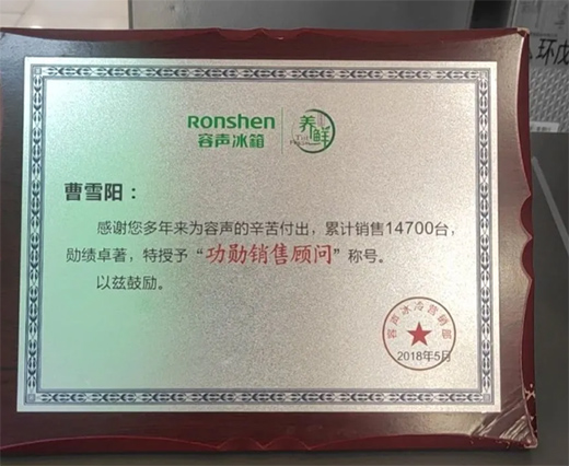 在容聲工作的這16年里,曹雪陽(yáng)靠著自己的勤奮和智慧在導(dǎo)購(gòu)工作中走出了屬于自己精彩的一路。曹雪陽(yáng)說,未來她將在這條路上不忘初心,繼續(xù)前行,為了自己,也為了對(duì)容聲品牌的堅(jiān)守。