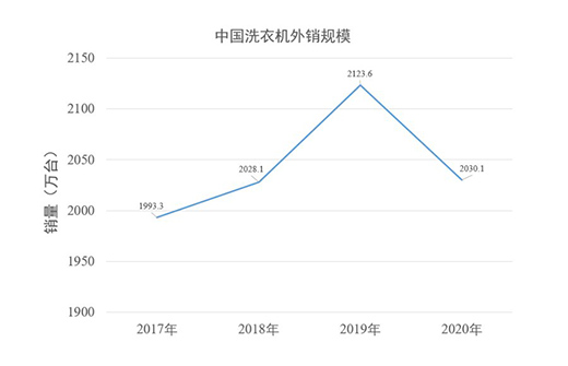 雖同比2019年,我國(guó)洗衣機(jī)行業(yè)的外銷(xiāo)規(guī)模出現(xiàn)了4.4%的下滑,但將時(shí)間放寬至近4年,不難看出洗衣機(jī)行業(yè)的外銷(xiāo)規(guī)模是在不斷增長(zhǎng)的:2017年1993.3萬(wàn)臺(tái),2018年2028.1萬(wàn)臺(tái),2019年2123.6萬(wàn)臺(tái)。