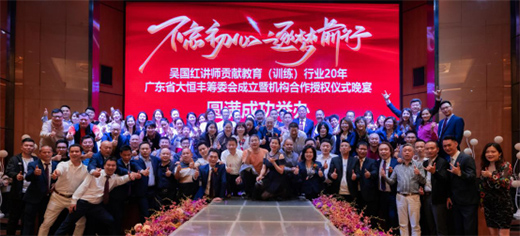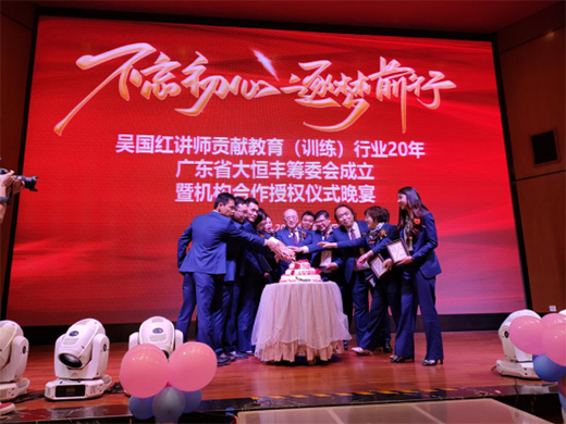 3月13日晚上,主辦方深圳大健康產業有限公司聯合協辦方恒保企業在廣州市海珠區稻香酒家(盈熙店)隆重舉辦了一場晚宴。本次晚宴以“不忘初心,逐夢前行”為主題,慶祝吳國紅講師貢獻教育(訓練)行業20年、廣東省大恒豐籌委會成立以及雷鋒雜志社東莞站對吳國紅講師和大恒豐(籌)戰略合作授牌儀式。