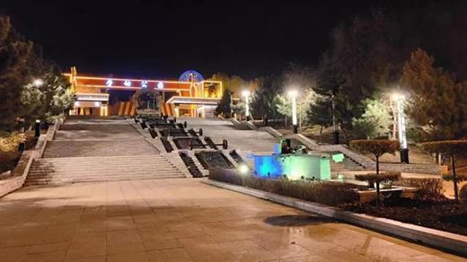 勞動公園入口樓梯燈飾效果據(jù)了解,公園大門是龍門吊的造型,古樸熱烈,華燈初上、空氣清冷、夜色迷人。向里望去齒輪造型中間《勞動光榮》四個大字,仿佛置身于幾十年前那段激情燃燒的歲月,不禁讓人心潮澎湃。夜晚的勞動公園燈光璀璨,北門下沉廣場護欄用燈飾點綴,讓人猶如置身夢幻世界一般。