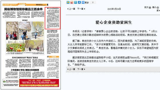 3月24日庫爾勒晚報報道《愛心企業資助貧困生》