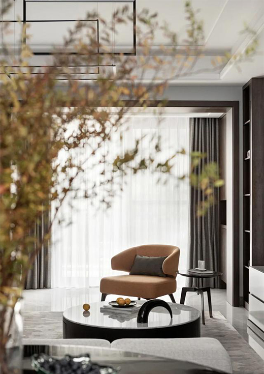 我們希望以咖色溫潤的木質(zhì),作為主要的色彩基調(diào),內(nèi)斂的色澤傳達(dá)家的溫暖,遠(yuǎn)離城市的喧囂。