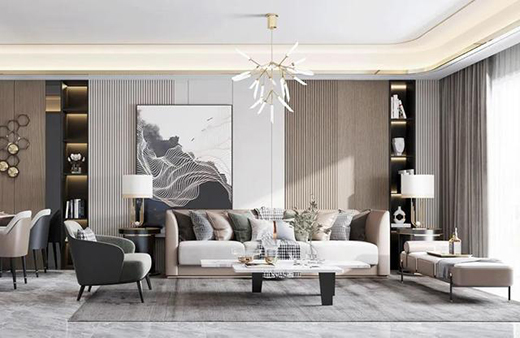 木飾面擁有良好的恒溫性、降噪性,不僅能有效保護建筑墻面,又具有極佳的裝飾性。與普通乳膠漆墻面相比,木飾面沙發墻靠放沙發更有利于墻面保護。