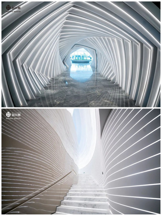 細(xì)節(jié)凹凸別致和與眾不同。一道道流光穿梭,鱗次櫛比的排列,仿佛置身時(shí)空隧道,溝通現(xiàn)在與未來(lái)。