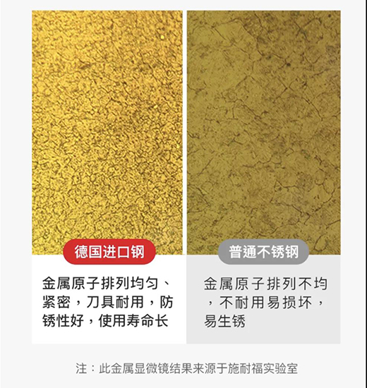 一是德國4034鋼材本身緊密的結構決定了廚刀的硬度和耐腐蝕性,讓廚刀能經久耐用。二是德國4034鋼材的耐磨性和鋒利保持度,讓這把廚刀能時刻保持刀刀鋒利,用起來省心省力。