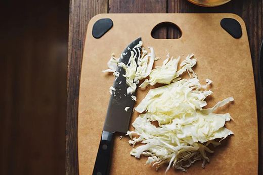 三德刀又名Santoku,在日系刀里也屬于全能型的廚刀,切片切丁剁碎都能利落完成。它相對于片刀而言會更輕便。
