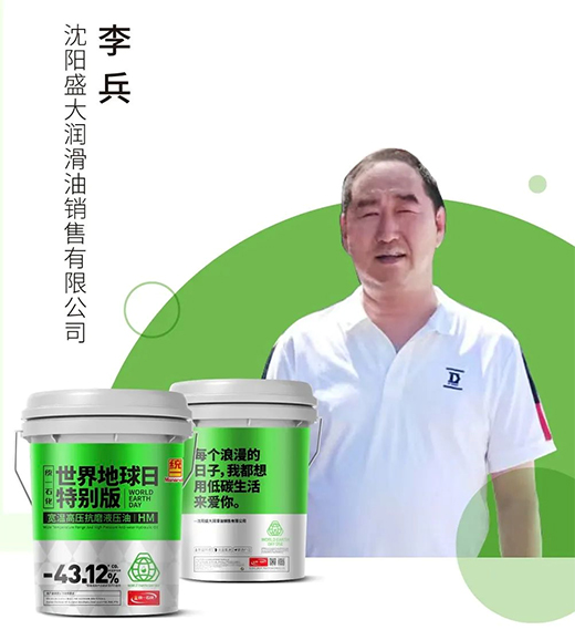 統(tǒng)一全新低碳品牌戰(zhàn)略及產(chǎn)品發(fā)布后,引起了與會(huì)者強(qiáng)烈的共鳴,也得到了經(jīng)銷商伙伴們的積極響應(yīng)。沈陽盛大潤(rùn)滑油銷售有限公司便是其中之一,該公司率先定制了地球日版低碳液壓油,這款液壓油經(jīng)英國(guó)標(biāo)準(zhǔn)協(xié)會(huì)bsi認(rèn)證,可綜合減碳43.12%。在定制時(shí),沈陽盛大潤(rùn)滑油銷售有限公司總經(jīng)理李兵特意印上了自己的低碳宣言:“每個(gè)浪漫的日子,我都想用低碳生活來愛你。”