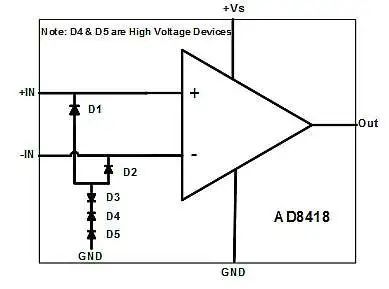 前端放大器中使用ESD二極管作為電壓鉗的設(shè)計