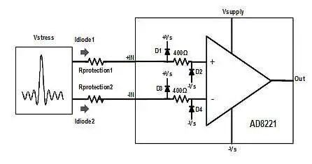 在輸入不受系統(tǒng)控制而是連接到外部世界的許多應(yīng)用中,例如測試設(shè)備、儀器儀表和一些傳感設(shè)備,輸入電壓可能會超過前端放大器的最大額定電壓。在這些應(yīng)用中,必須實施保護方案以保持設(shè)計的生存范圍和穩(wěn)健性。