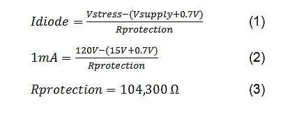 鑒于這些要求,Rprotection >105 kΩ 會將二極管電流限制為 <1 mA。