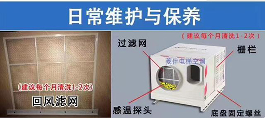 用戶在使用電梯空調過程中需要對空調的過濾網與網布進行定時清洗,