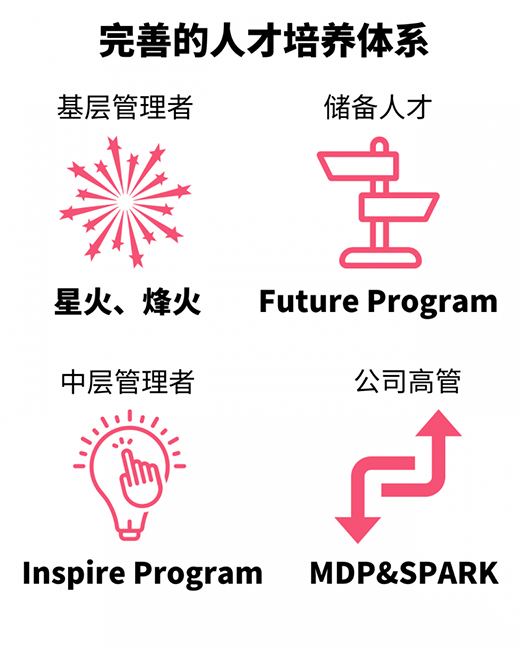 面向高潛儲備人才設計“Future Program”,結合業務進行領導力提升,為未來中層管理者培養后備人才。